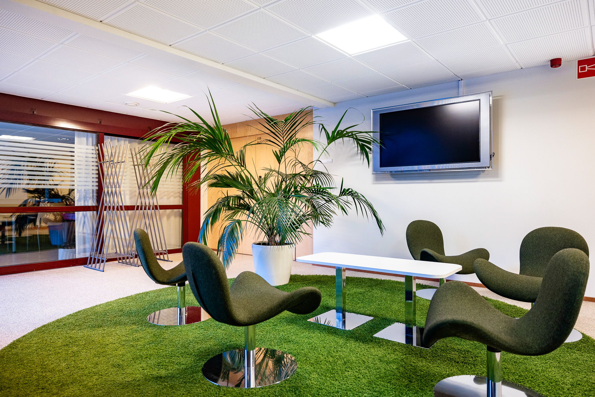 – Datariinan pääaulaan toivottiin myös opasteita kiinteistön yritysten sijainnista. Viime vuoden lopulla aulaan asennettiin näytöt, jotka otetaan käyttöön lähiaikoina. Näyttöjen yksi tarkoitus on toimia ns. porrasnäyttönä eli kertoa, missä kerroksessa minkäkin toimijat tilat sijaitsevat, Annemari sanoo.