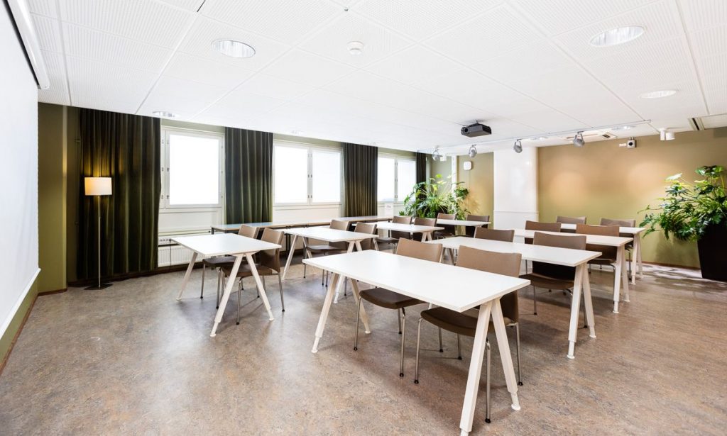 Viihtyisässä kokoustilassa on ajanmukainen varustelu ja langaton internetyhteys.