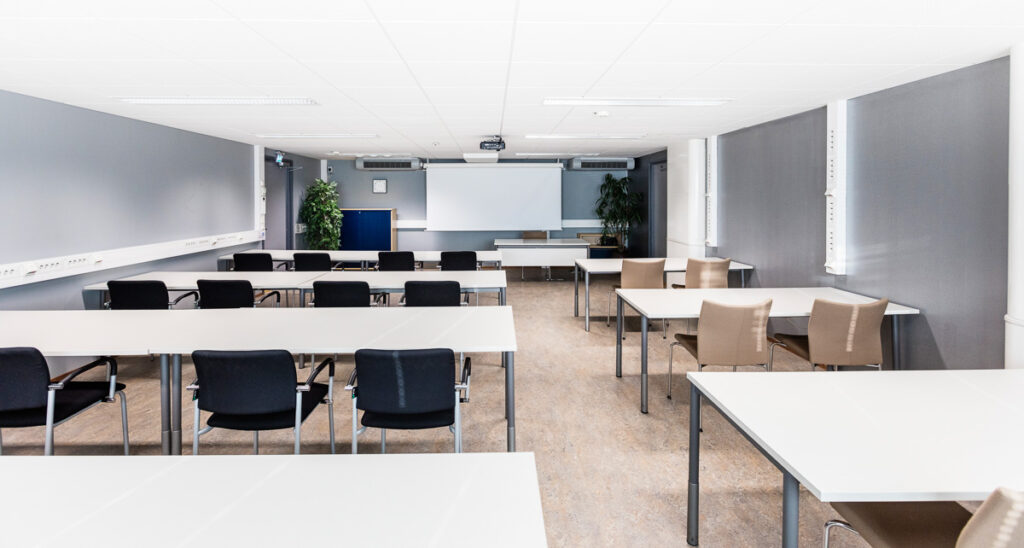 Rakennuksen kellarikerroksessa sijaitsevaan Koulutustila Nettiin mahtuu 20 henkilöä ja kouluttaja.
